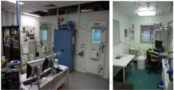 图左为新款FMS便携式主机,图中、右为人体呼吸面罩(或头盔)