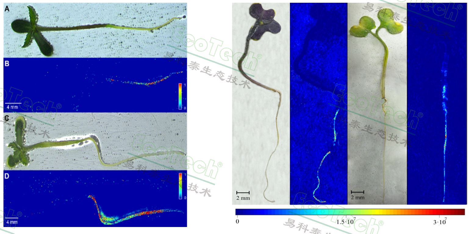 过去几十年工业生产的增长导致重金属(以及近期的纳米颗粒等)污染程度增加,土壤中的这些污染物对生长在其中的植物构成巨大威胁。对于工业作物,这种污染会显著影响产量;对于粮食作物,它会对人类健康产生重大影响。如图对植物进行镉毒性测试,FireFly可以清晰获取镉元素在大麻和白芥幼苗中的相对分布图。