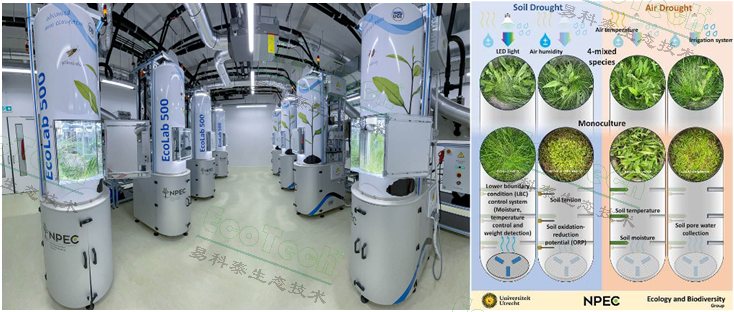 Ecolab土壤-植物-大气综合研究微生态系统包括上部大气单元和下部土壤单元,分别模拟和监测光照、温湿度、水分含量等环境指标。上部单元作为动植物的栖息地用于研究植物地上部环境响应以及动植物相互作用;下部单元用于研究土壤过程以及土壤动物与植物根系与土壤的互作