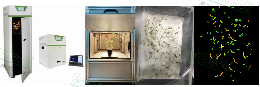 左图:新一代FluorCam1300多激发光多光谱荧光成像系统;中:FluorTron®植物光合表型成像分析系统;右:利用易科泰叶绿素荧光成像技术测量番茄种子萌发率并评估种苗活力