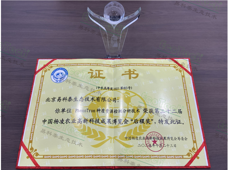 近日,以“新质生产力 农业新未来”为主题的第三十二届中国杨凌农业高新科技成果博览会在陕西杨凌盛大开幕。被誉为农业领域“奥斯卡”奖项的后稷奖评选结果也于10月26日下午重磅发布,由北京易科泰生态技术有限公司自主研发的“PhenoTron种质资源检测分析技术”,从468项农业科技项目中脱颖而出,荣膺后稷奖,成为继“UAS-4专业无人机遥感平台”、“FluorTron多功能高光谱成像技术”之后,易科泰自主研发技术第三次斩获该奖项。