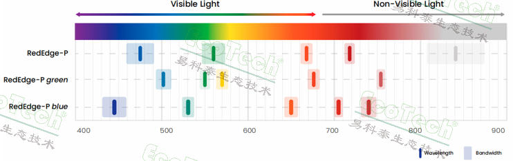 - 15波段超光谱覆盖:融合RedEdge系列相机的光谱优势,实现最多15个多光谱波段的同步捕获,覆盖可见光、近红外及关键红边区域。其独特的海洋蓝及多个红边波段,可快速获取PRI、ARI、CRI等植被指数,精细化分析类胡萝卜素、花青素等植物成分,挖掘肉眼不可见的深层信息。