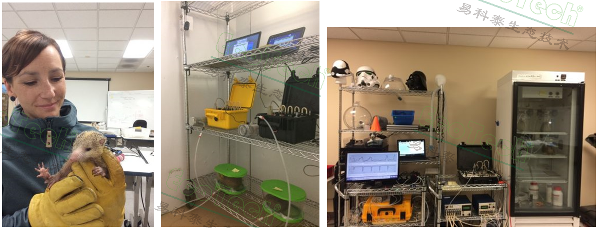 从左至右:Rebecca Oelkrug博士研究的马岛猬(T.ecaudatus)、FOXBOX定制马岛猬呼吸代谢仪、FMS搭建的呼吸稳定同位素示踪能量代谢系统