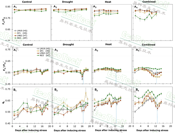 发表于 Agronomy《Investigating Combined Drought- and Heat Stress Effects in Wheat under Controlled Conditions by Dynamic Image-Based Phenotyping》的研究,就采用PlantScreen高通量表型成像分析技术对干旱、高温及其复合胁迫对四种北欧小麦基因型的影响进行了综合评价,以筛选耐受性强的品种。