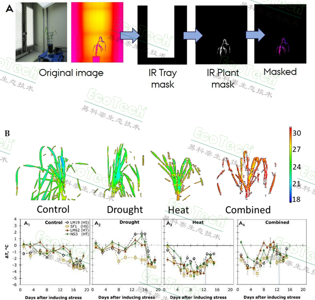 冠层温度是一种重要的生理特征,可用于筛选热敏感和耐热基因型,因为它反映了冠层的二氧化碳同化和气孔调节。本研究通过热红外成像技术监测小麦冠层温度。