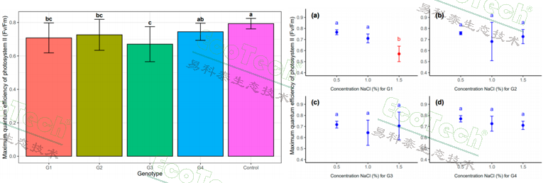 愈伤组织的Fv/Fm:基因型G4的光合最为稳定,而基因型G3的光合则表现最弱。
