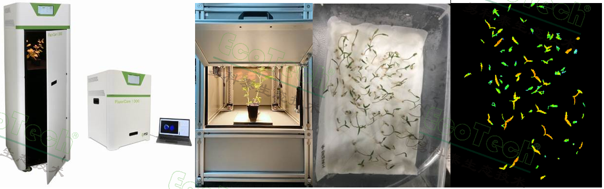 左图:新一代FluorCam1300多激发光多光谱荧光成像系统;中:FluorTron®植物光合表型成像分析系统;右:利用易科泰叶绿素荧光成像技术测量番茄种子萌发率并评估种苗活力