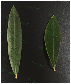 RGB成像:油橄榄叶片,左:对照;右:遮荫处理