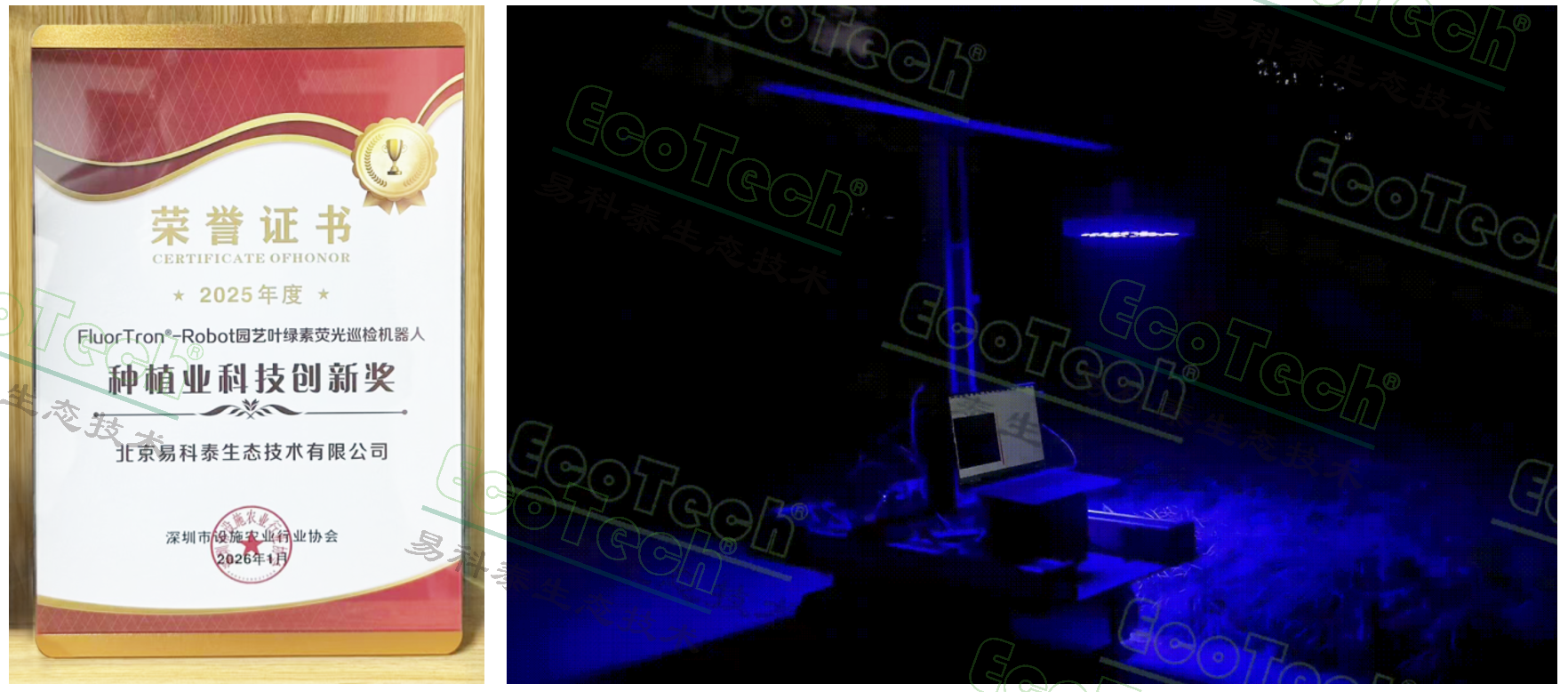 2026年1月9日,第三届农业科技创新大会暨农业科技展在深圳市宝安区航城街道凤凰山农趣谷隆重启幕。本届大会以“科技赋农·产融共生”为主题,汇聚了500余位农业科技领域的院士专家、龙头企业决策者与产业投资人。北京易科泰生态技术有限公司作为智慧农业领域的领先企业,携新一代农业传感器技术亮相展会,并凭借FluorTron®-Robot园艺叶绿素荧光巡检机器人荣获大会颁发的“种植业农业创新奖”!彰显创新实力!
