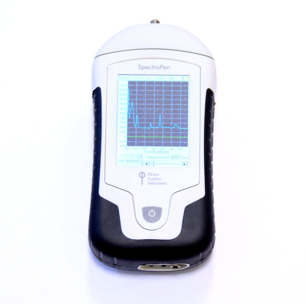 SpectraPen使用可充电锂电池供电,配有数据采集器和触控屏,不需要使用电脑即可独立进行测量。完整的光谱图及每个波长的光强读数都可以即时显示在触控屏上。SpectraPen还专门内置了测定反射率和透过率的功能。测量数据和光谱图都能够通过USB接口导出到电脑上。