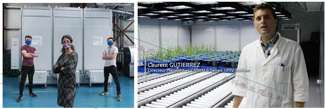 左图:爱尔兰都柏林大学Sónia Negrão教授与学生合影,身后为2020年新安装的PlantScreen温室高通量植物表型成像分析系统前。右图:法国亚眠大学分子生物学区域资源中心与温室平台主任Laurent GUTIERREZ接受采访,向外界介绍该校核心科研平台——PlantScreen温室高通量植物表型成像分析系统。照片中的两位教授均为此次分享论文的作者之一。