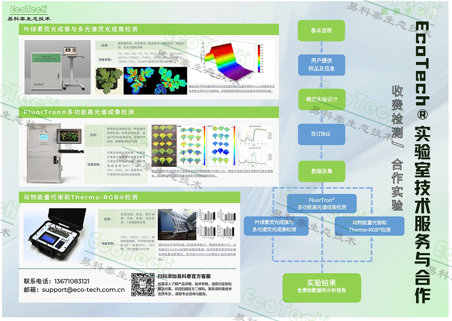 易科泰生态技术公司设有EcoTech实验室,承接叶绿素荧光成像与多光谱荧光成像检测、FluorTron®多功能高光谱成像检测、动物能量代谢和Thermo-RGB®检测,欢迎合作!