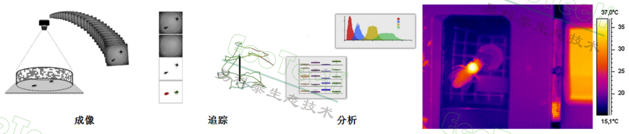 VISIR技术用于昆虫行为和生理研究的系统。它通过结合可见光和红外热成像,能够详细记录和分析昆虫的行为轨迹和体温变化。该系统具备高分辨率视频录制和分析能力,能够进行3D行为分析,并支持高通量样本监测。